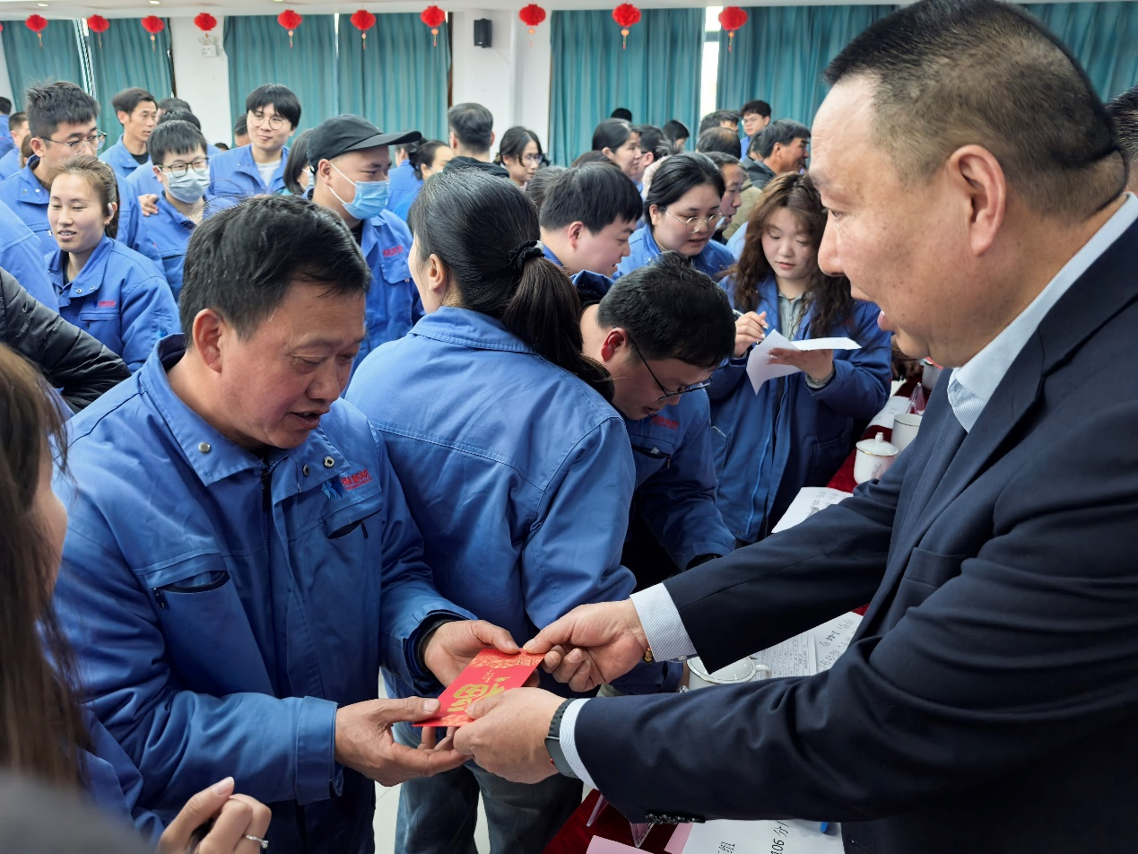 大會最后,舉行了溫馨而喜慶的“發紅包”活動。公司領導向全體員工派發新年紅包,送上新春的祝福與關懷,將現場氣氛推向最高潮。紅色的祝福傳遞著公司對員工的深切關愛,也寓意著新的一年紅紅火火、蒸蒸日上。